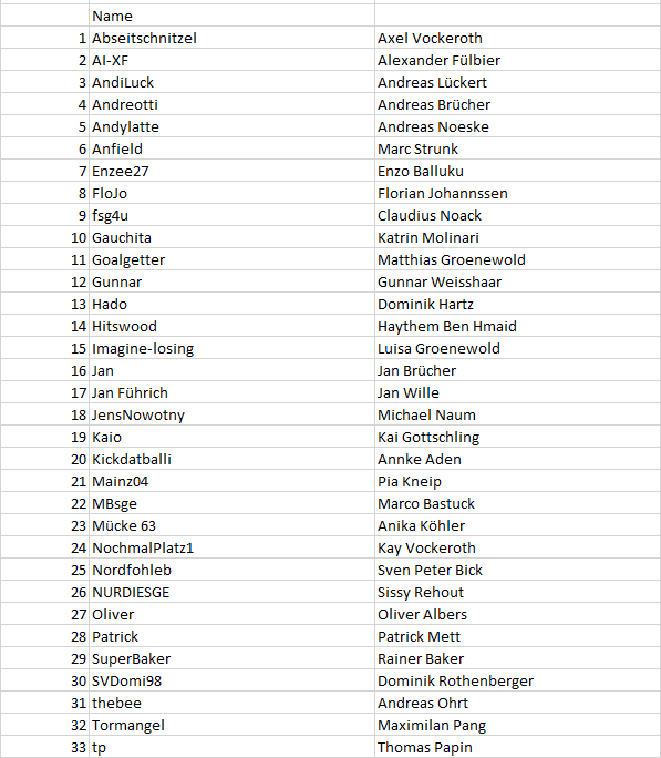 am 22.08.2025 geht es wieder los mit der Bundesliga und wir haben wieder eine schöne Anzahl an Tippern in unserer Runde.