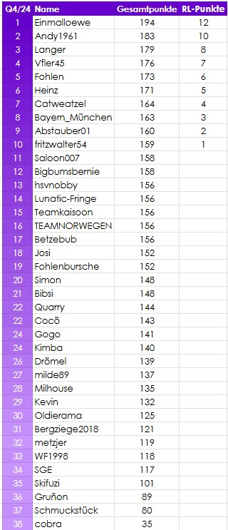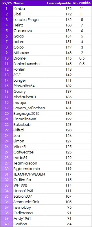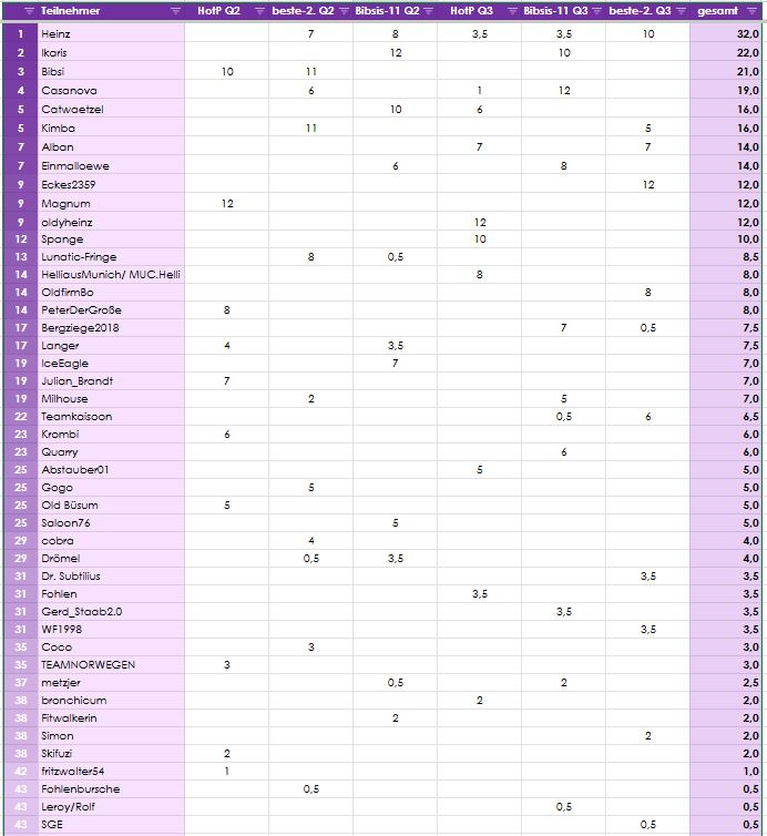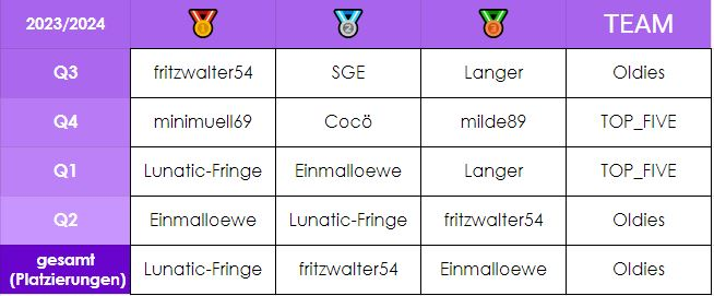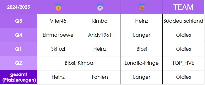 Besonderheit: Fritzwalter54 hat als erster Tipper im Bibsiversum überhaupt zwei parallel stattfindende Sessions gewonnen! Catweatzel hat es ihm in der Herbstsession 2024/25 gleichgetan.