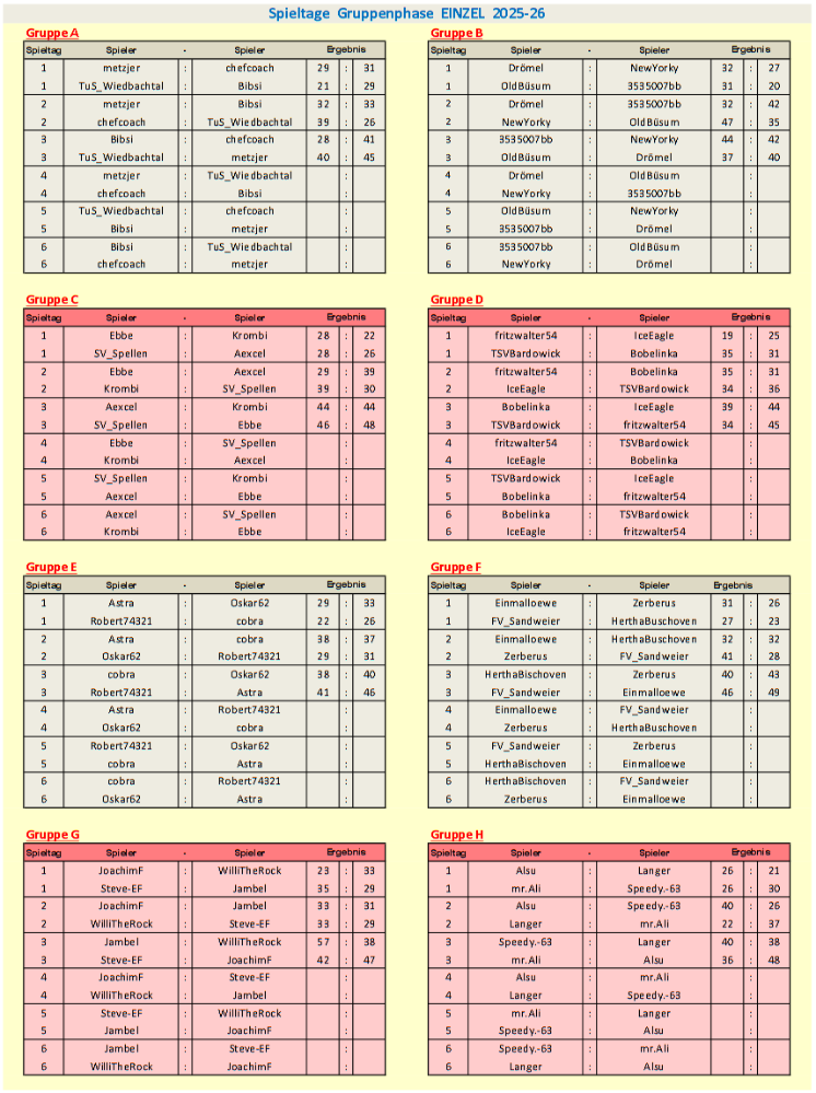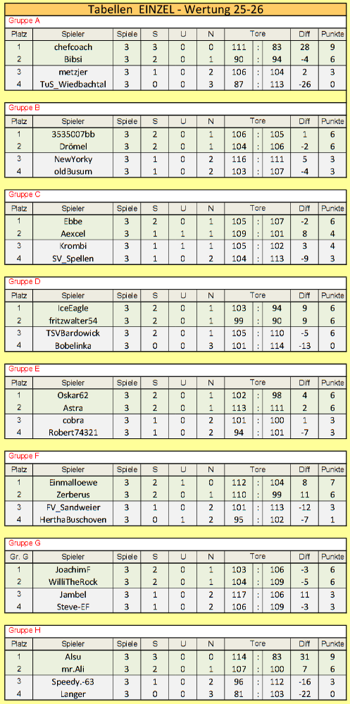 Soweit nicht etwas anderes vereinbart wurde, entscheidet bei Gleichstand in der Gesamtpunktzahl die Anzahl der Spieltagssiege ("Siege") über die Platzierung der Tipper.