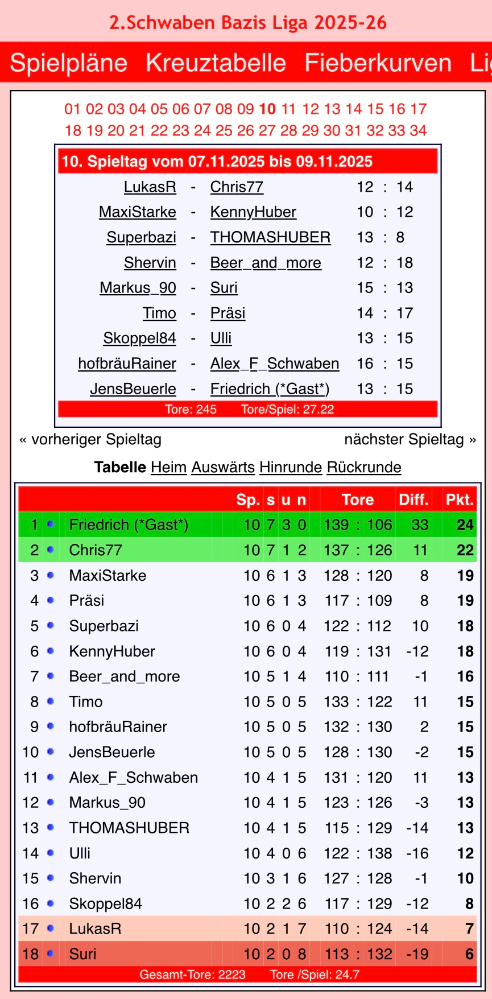 ...bei Gleichstand in der Gesamtpunktzahl entscheiden die Anzahl der Spieltagssiege ("Siege") über die Platzierung der Tipper.