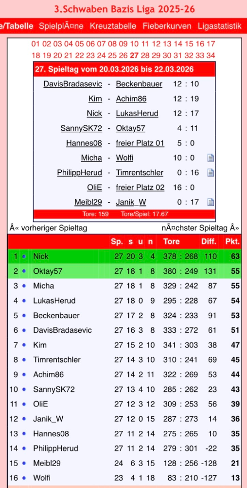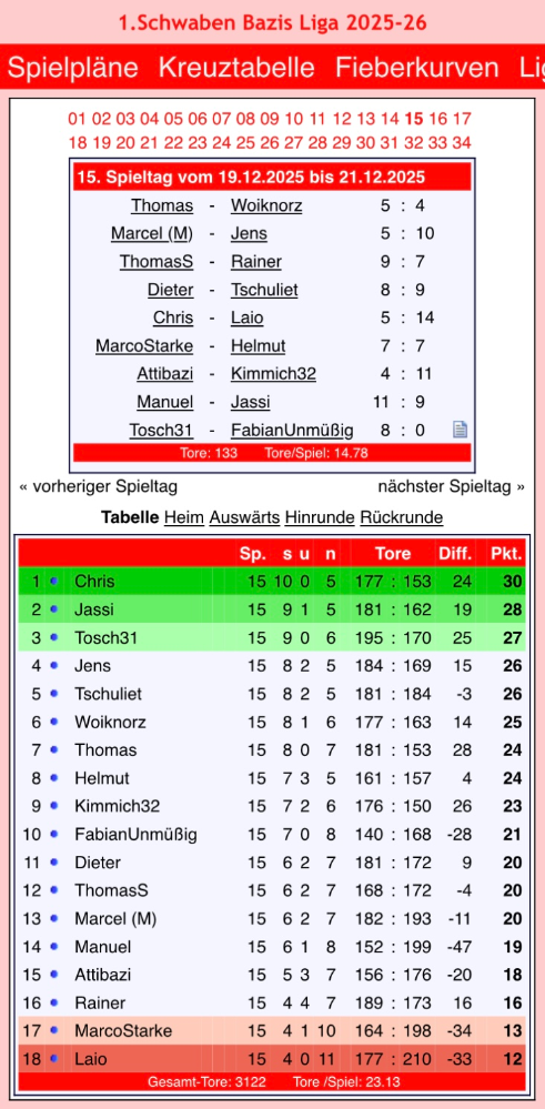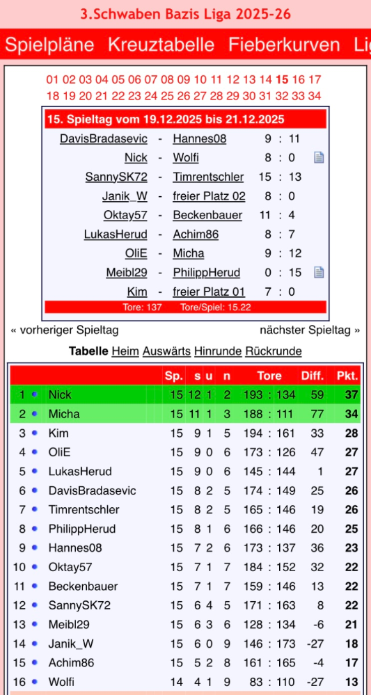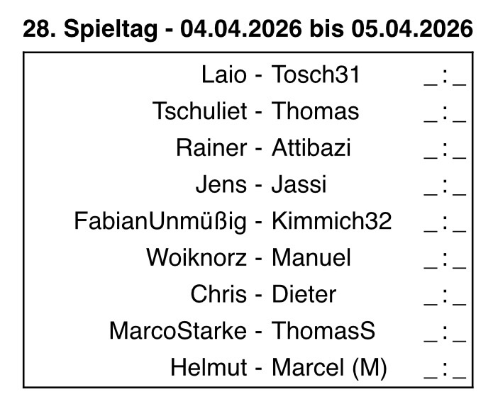 ...bei Gleichstand in der Gesamtpunktzahl entscheiden die Anzahl der Spieltagssiege ("Siege") über die Platzierung der Tipper.