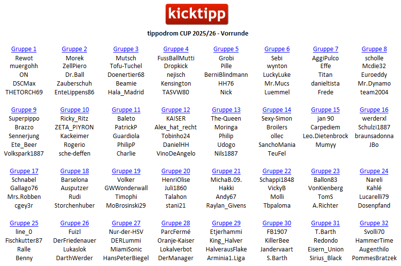 So ein Pokal hat ja nun bekanntlich eigene Gesetze: 142 Tipper spielen in insgesamt 32 Gruppen an jedem dritten Bundesliga-Spieltag gegeneinander: